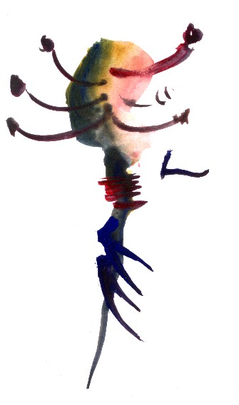 Orpheus erkennt die BlumenMischtechnik auf Papier 19 x 10 cm